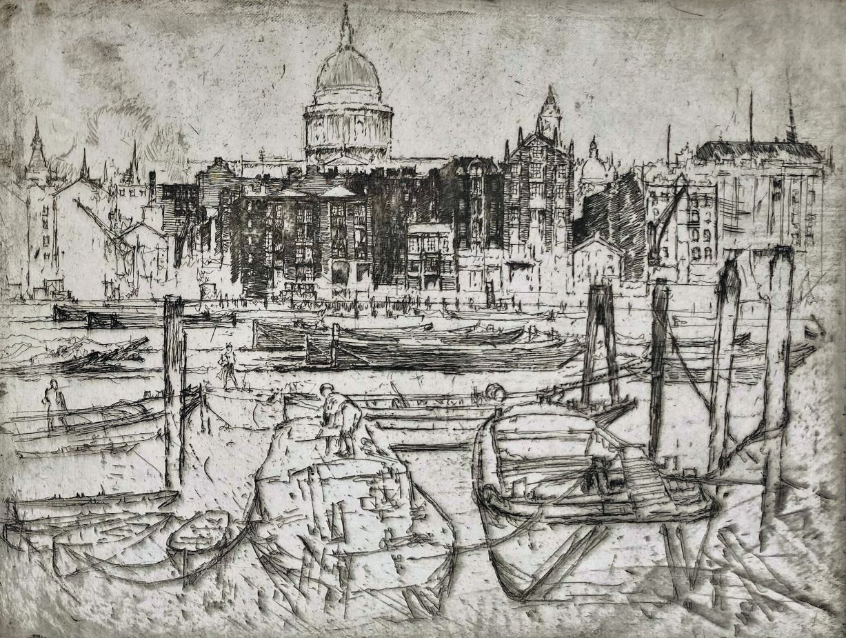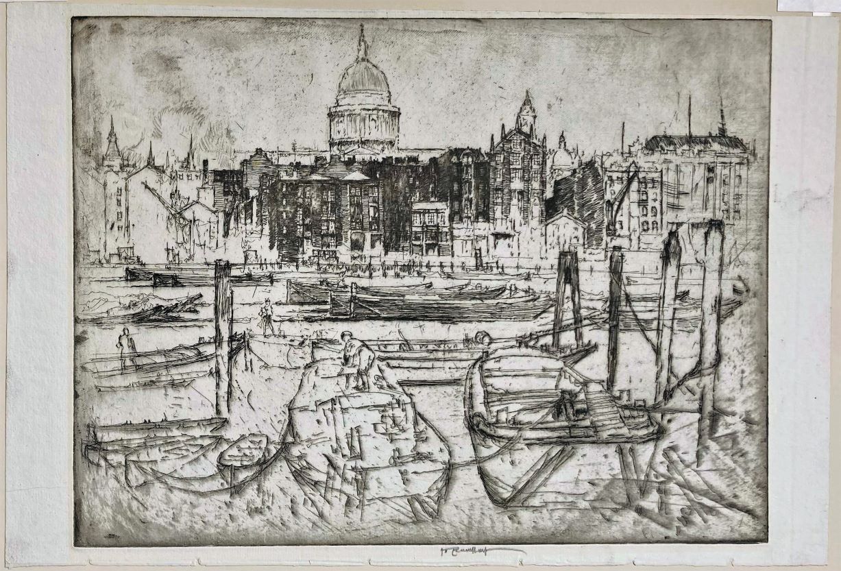 St. Paul's from Bankside. 1905. Etching. Wuerth 393. 9 3/8 x 12 1/2 (sheet 10 x 14 3/4). Edition c. 50. A rich impression printed on laid paper from an antique volume. Printed by the artist. Signed and annotated 'imp' in pencil. $750.